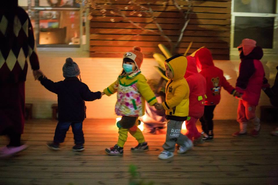 1. 冬之慶典前後 1-2 週,老師將每天帶領孩子至後花園做光明、祈福儀式,感受冬至節來臨。會事先將準備的稻 草捆綁好,在火爐中燃燒,並漩渦祈福及唱歌慶祝~在冬至期間將有個〝火〞的元素每天在孩子心靈中滋潤著。