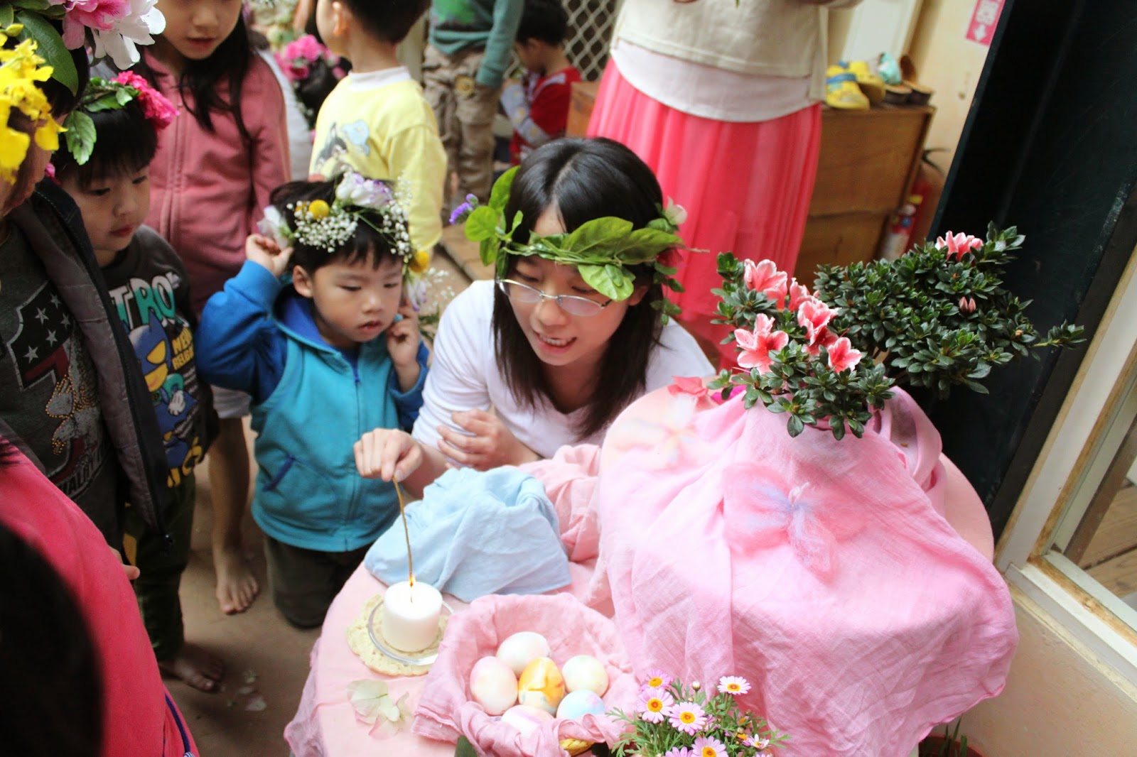 生命、希望、喜悅~春之慶典分享 本週的天候就如同春天後母面,說變就變,一會兒陰雨綿綿、一會兒又展露陽光,孩子們也隨著氣候的轉變,不斷 得穿脫著衣服,著實讓人的身體展露不適。 而慶典當天,一早灰濛的天候,也讓我們帶著一顆坎坷不安的心進入一天,大伙期望今天得以順利進行。稍晚,環境中的預備充滿了春天的氣息,有孩子們製作的彩蛋、舞蝶,種植的小麥草…,處處充滿生氣。
